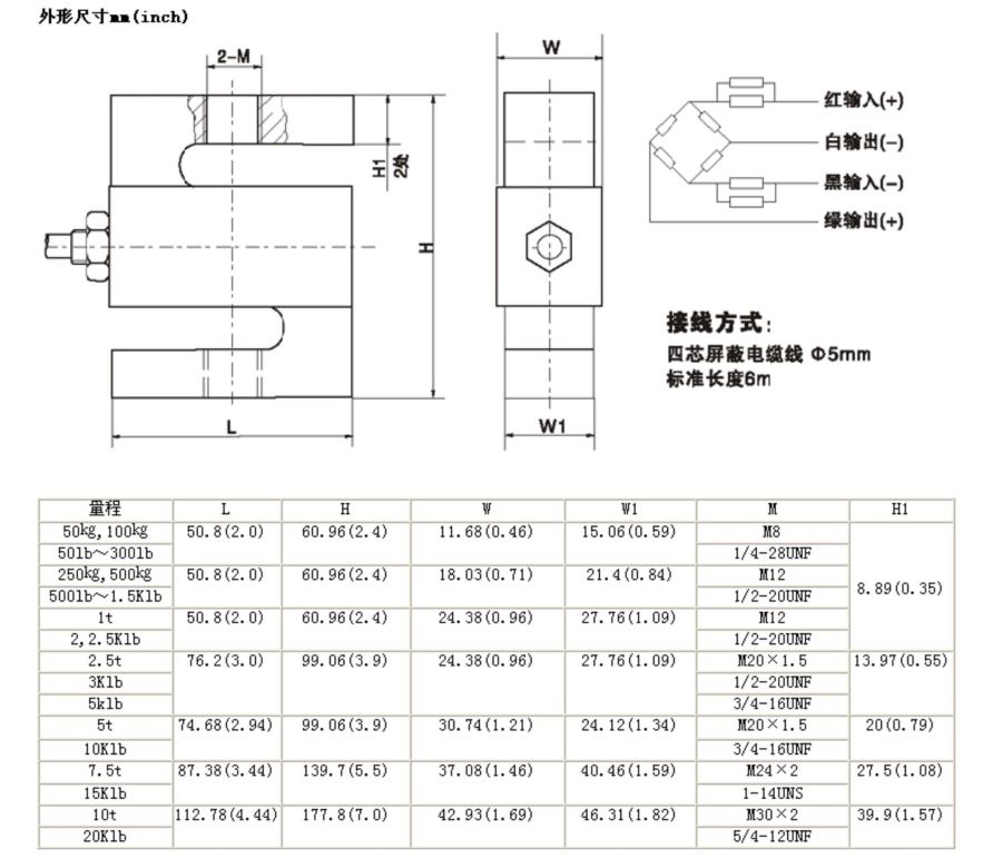 ◆额定载荷 t 0.025/0.05/0.1/0.15/0.25/0.5/1/2.5/5/7.5/10